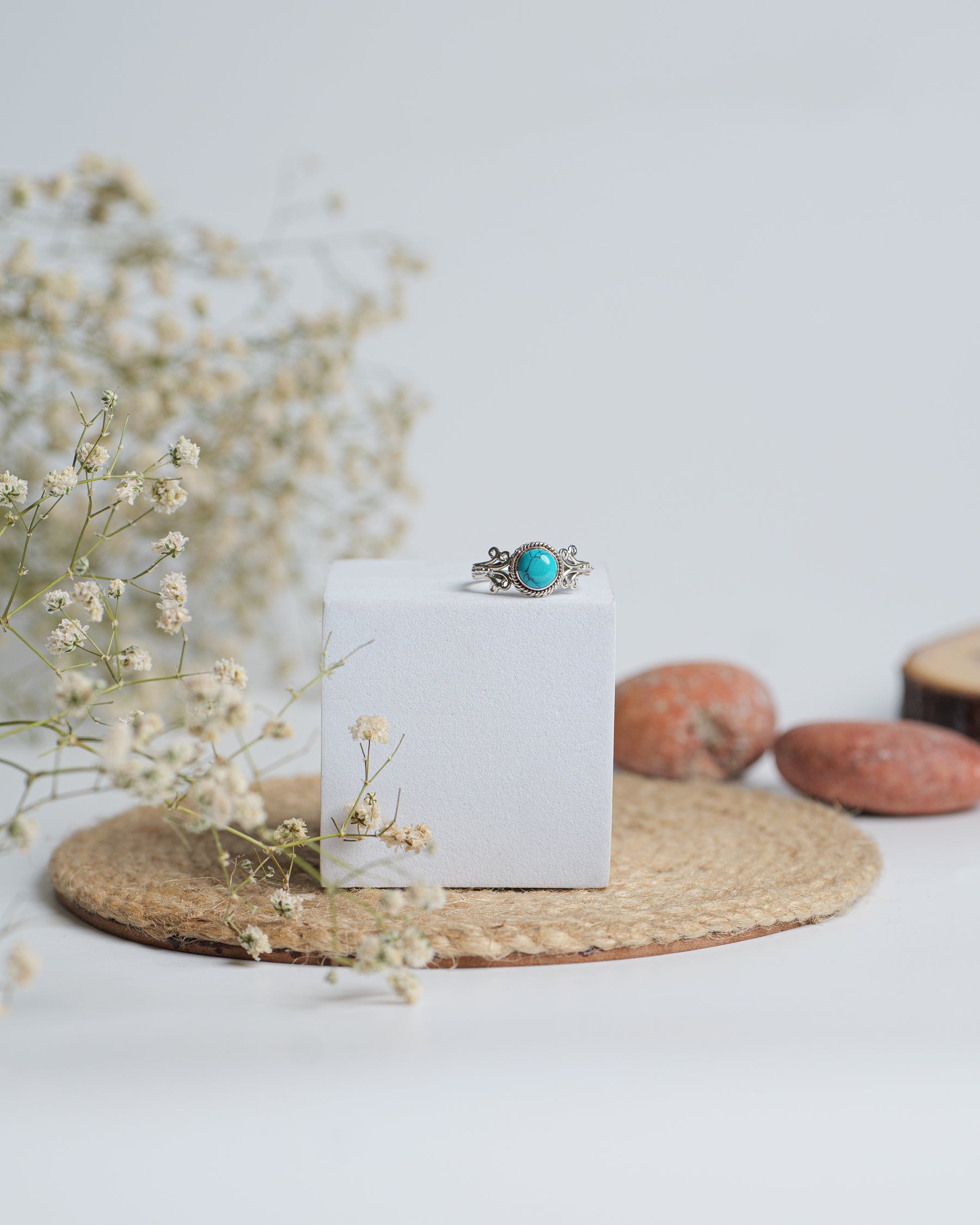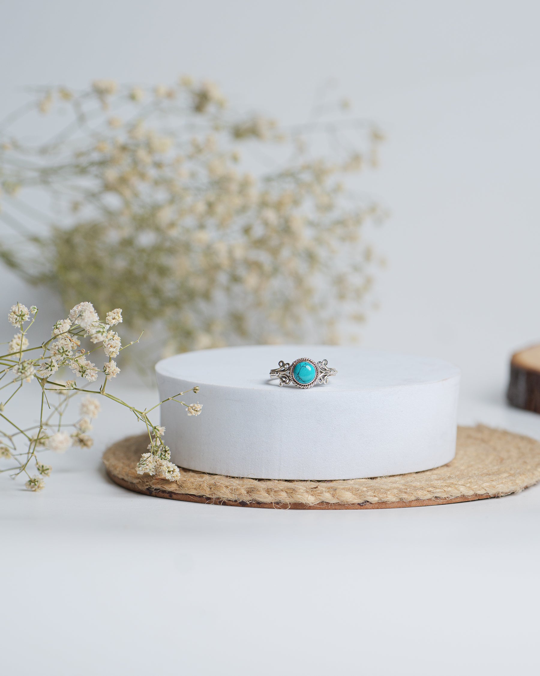 Experience the perfect combination of tradition and modernity with the Turquoise 925 Silver Carved Round Ring.